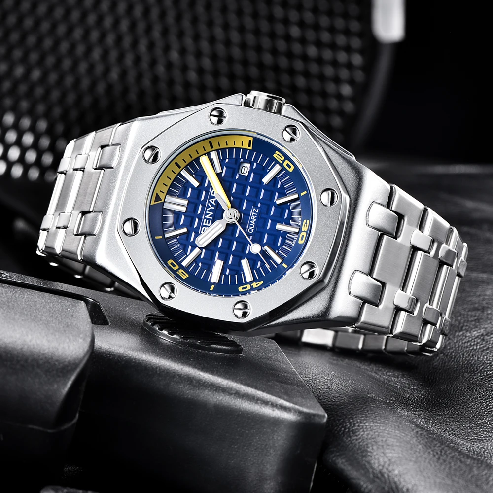 Benyar Luxury Brand Men Watches Stainless Steel Chronograph Watch Waterproof Casual Business Quartz Wrist Watch Men Reloj Hombre