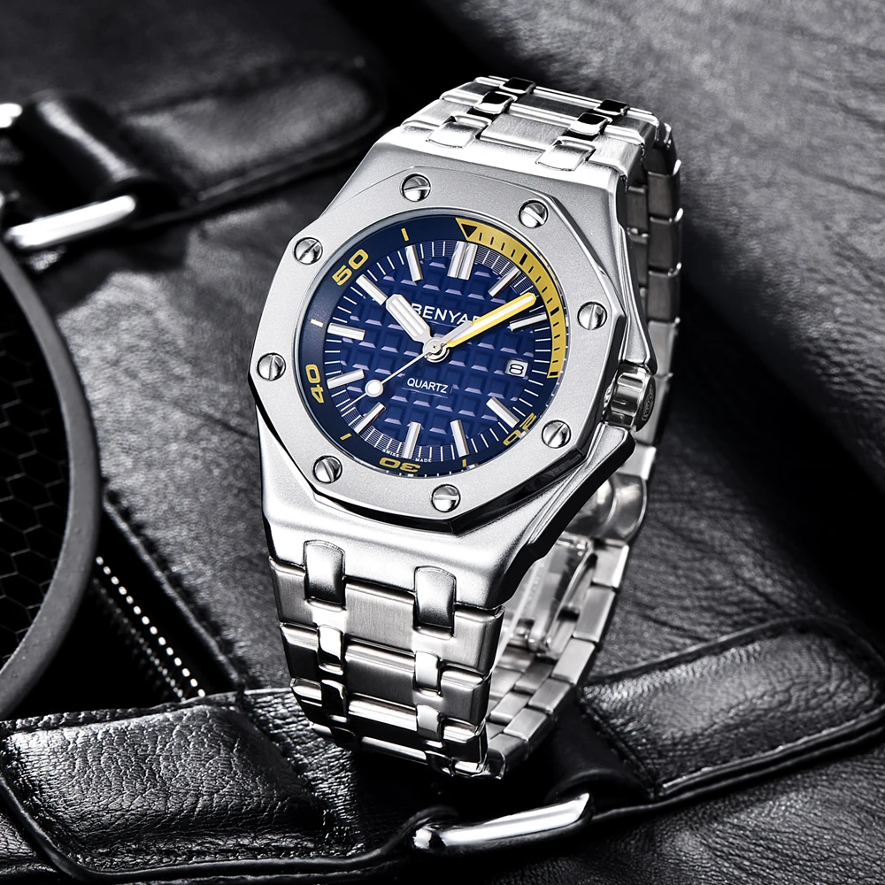 Benyar Men Watch Business Golden Stainless Steel Men Quartz Sports Watches Fashion Top Brand Creative Waterproof Wristwatches