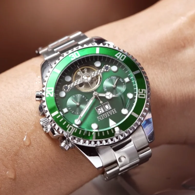 Haiqin Brand Luxury Men Watch Mechanical Business Steel Watch Sports Waterproof Wristwatch Tourbillon Reloj Mecanico Hombres
