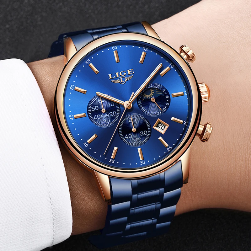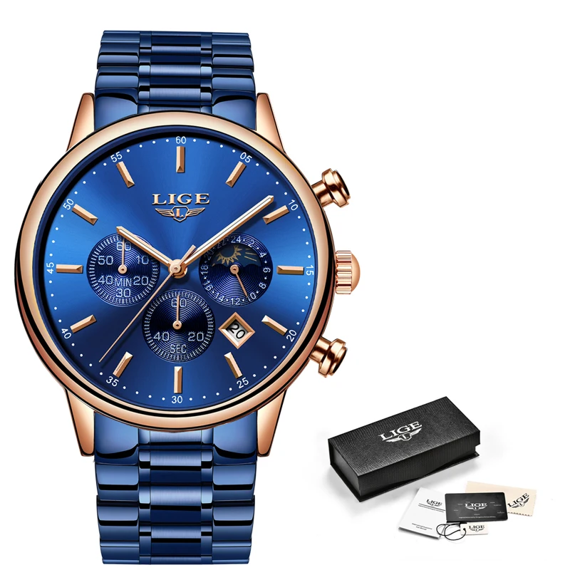 Lige Fashion Business Blue Mens Watches Brand Luxury Clock Male Military Steel Waterproof Quartz Watch Relogio Masculino
