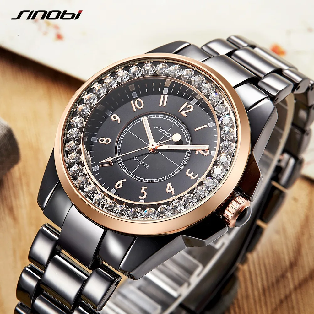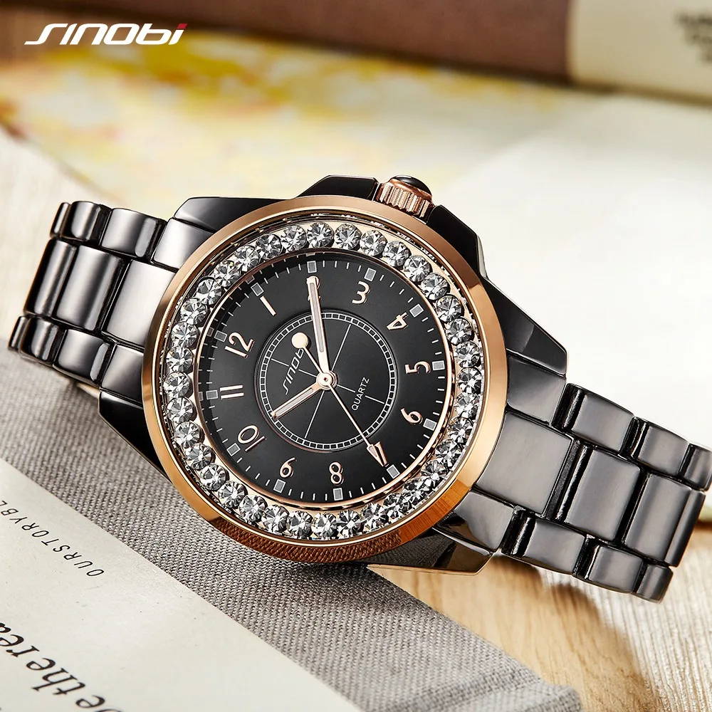 Special Offer Sinobi Fashion Women Diamonds Wrist Watches Imitation Ceramics Watchband Top Luxury Brand Dress Lad with Free Shipping Worldwide!