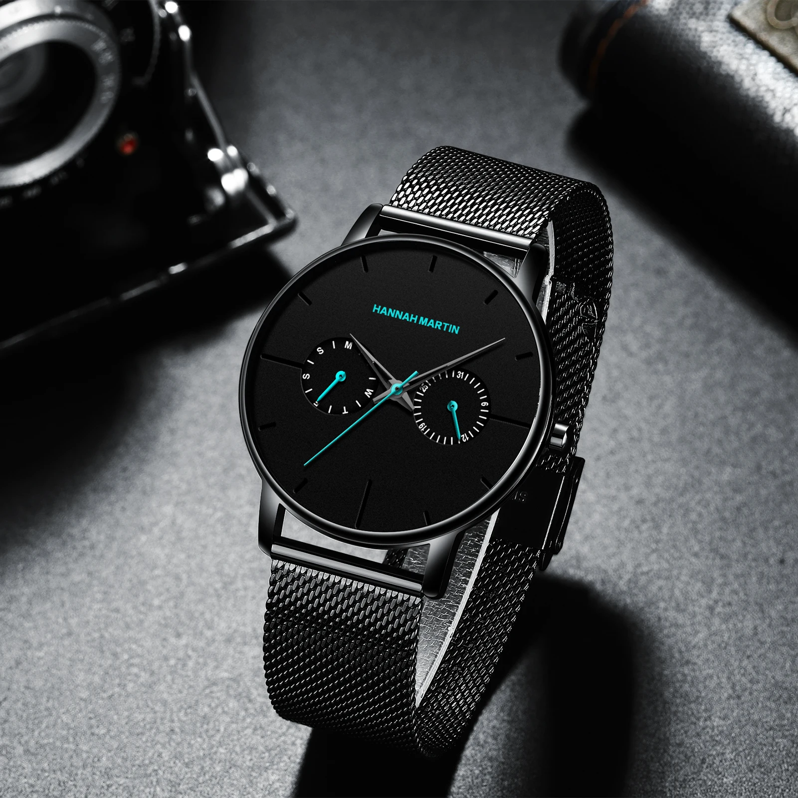 Men Watche Top Brand Fashion Multifunction Small Dial Stainless Steel Mesh Business Waterproof Wristwatches Relogio Masculino
