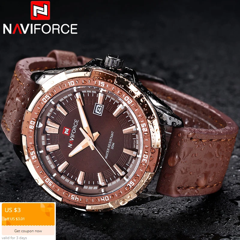 Naviforce Brand Quartz Watch Sports Watch Leather Band Waterproof Analog Wristwatches Calendar Clock Relogio Masculino